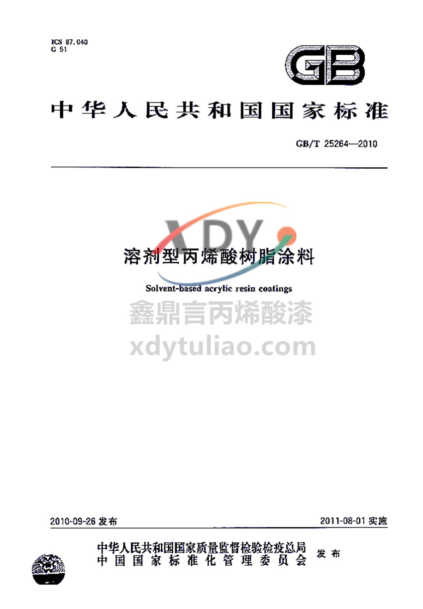 溶劑型丙烯酸樹脂涂料國(guó)家標(biāo)準(zhǔn)GB/T 25264-2010
