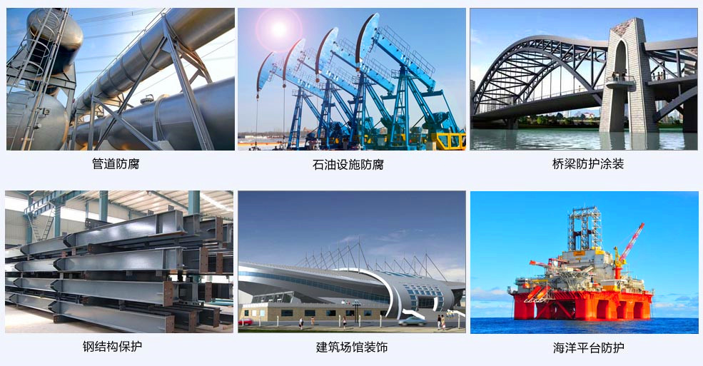 環氧富鋅底漆適用于海洋工程、鐵路橋梁、煤氣罐、集裝箱、鋼結構等需重要防腐作為防銹底漆,一道成膜在75um以上,可用作車間預涂底漆。